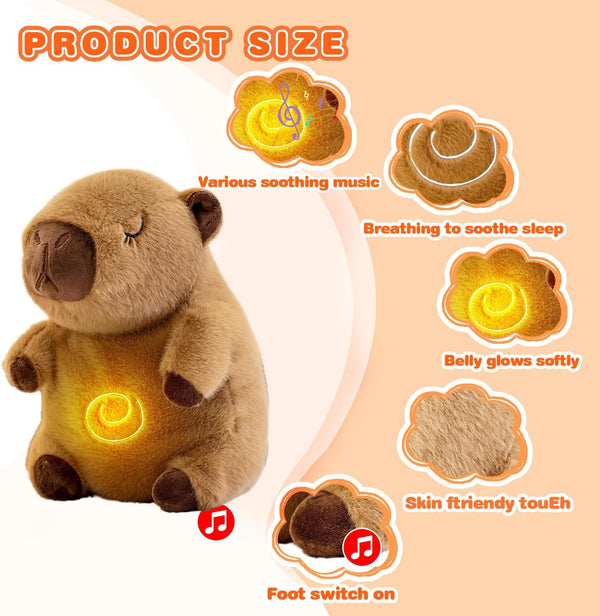 A diferencia de otros, combina movimiento respiratorio realista, luces y música en un diseño portátil y suave que crea calma inmediata y mejora sueño.