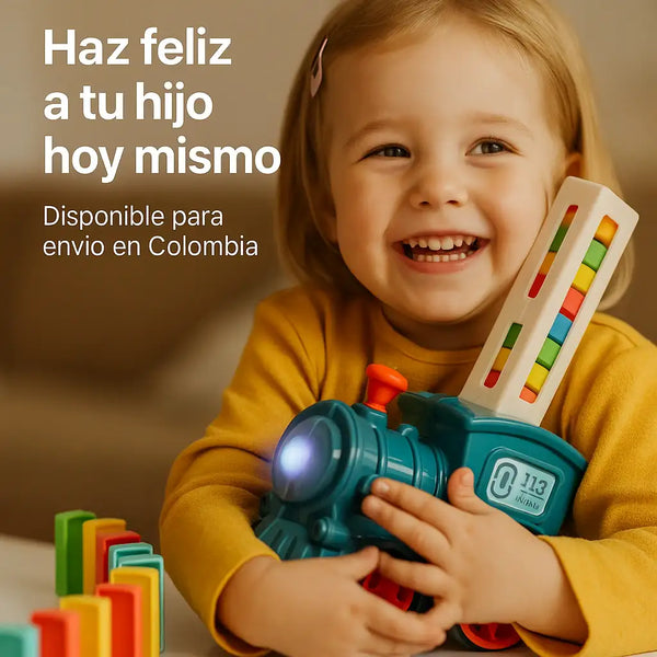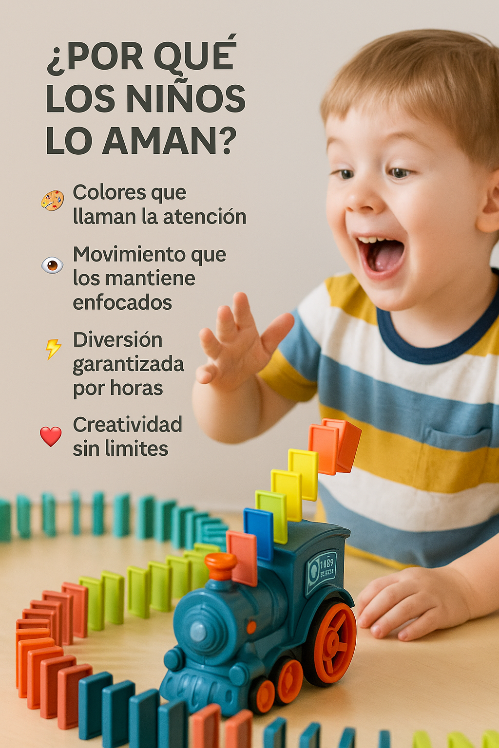 Cambia horas frente a pantallas por juego táctil. Este tren de dominó crea retos prácticos que captan atención y reducen distracciones, fomentando concentración sostenida en niños.
